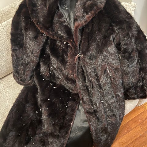 Eldre kvalitets sort pelsjakke . Litt usikker på størrelse men anslår str.42/44