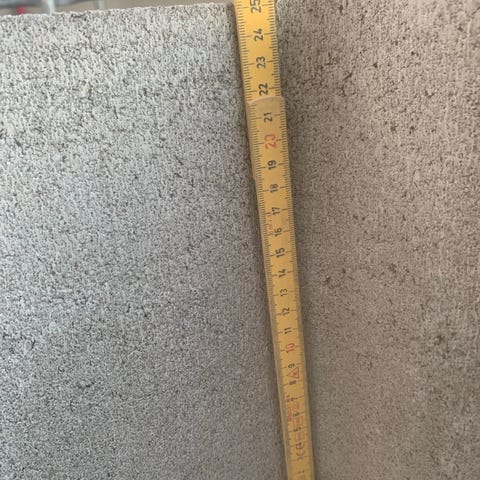 Betongtakstein med mål 35 x 22 cm i grå farge. Taksteinen er laget av betong / støpt. De har ikke vert i bruk, men ligget som reserve.
