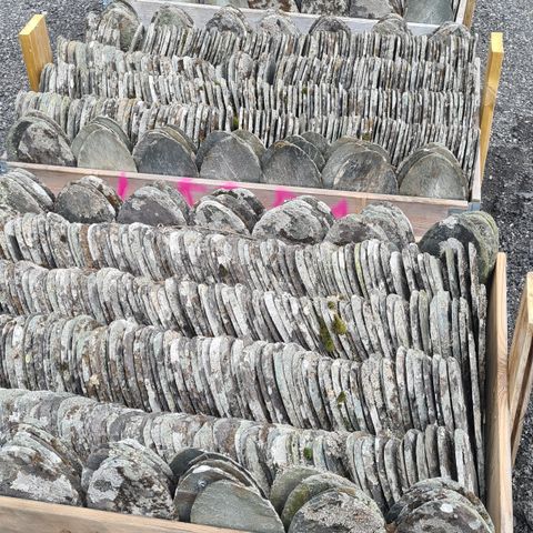 Skifer ca 120 m2. (2200-2400 stk stein ) fotrems ca 55-57stk ) gavl /ende skifer 50-52 stk. selges samlet.