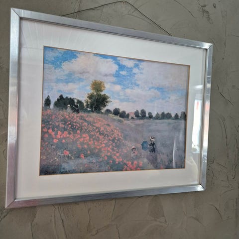 Selger et pent innrammet bilde av et av Monet sine vannliljemaleri. Passepartout og ramme følger med trykket.