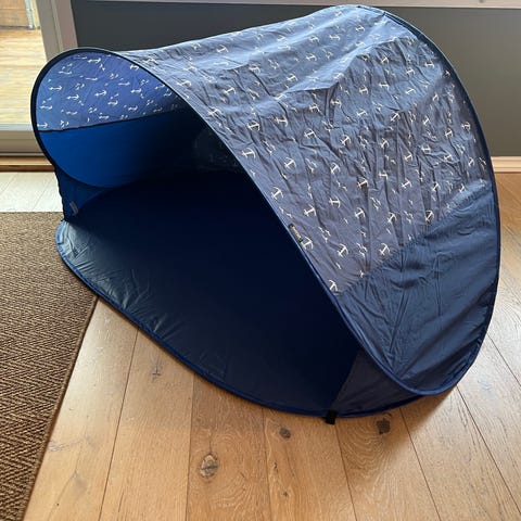 Uåpnet yngri strandtelt i fargen blå 💙