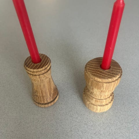 Håndlaget lysestake i eik fra egen hage - koselig liten dekorasjon i juletiden - lyset følger med