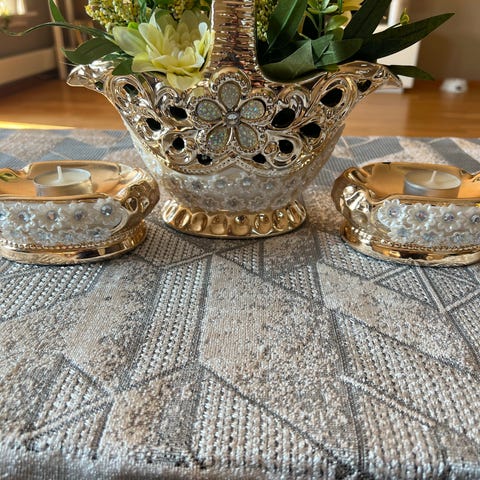Flyttesalg. Korall tre i « gull. Høyde 47 cm og det som er mindre 40 cm. Stått til pynt.