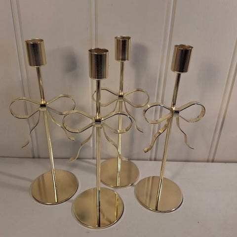 Et sett med 3 eller en trio med høye messing lysestaker i forskjellige høyder, med blank spiral hals. Ikke nye lysestaker, har spor av alder, men kke noen skader. Lysestakene er 20, 26 og 31 cm høye, passer for kronelys.