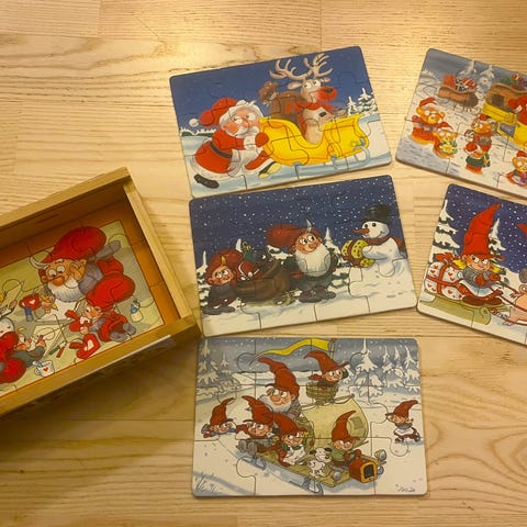 L128. TreBok Kjøretøy/fly/båt som kan henge/borrelås – 3 dobbelt sider. Petite collage. Litt slitasje. 40kr