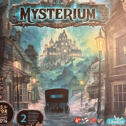 Selger Mysterium, et stemningsfullt og visuelt vakkert brettspill der spillerne samarbeider for å løse et mysterium. Spillet er helt nytt og ubrukt, fortsatt i original emballasje.