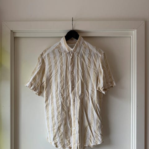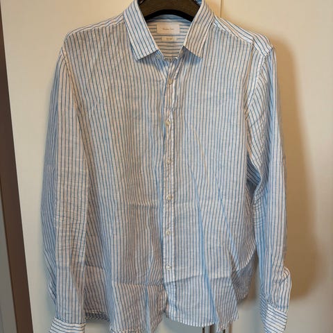Skjorte fra This Glory Days, str. M med striper- lyseblå/ hvit i 100% bomull.