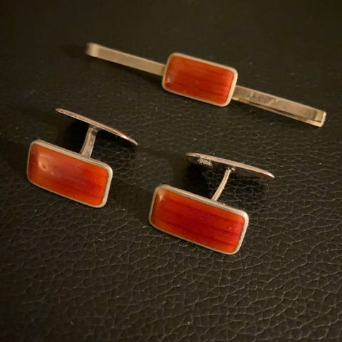 Smykkesett I forgylt sølv og emalje fra Aksel Holmsen.