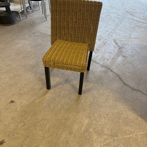 Trekk stol med sete i sort og beige skinn. Stolen har en ramme i tre. Passer til bruk i spisestue eller møterom. Setet har polstring for komfort.