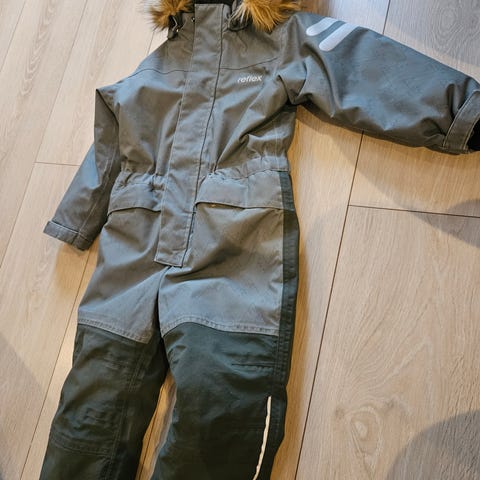 Reflex barneklær gutt dress i blå farge, størrelse 104. Dressen har hette og er laget for barn i denne størrelsen. Den har forsterkede områder på knær og er utstyrt med reflekser for økt synlighet. Passer til utendørs bruk og gir dekning for hele kroppen.