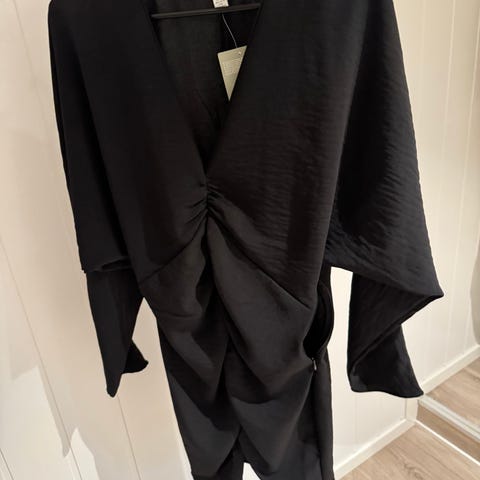 Festkjole i størrelse XS, farge grå med sølv.Kjolen har brede skulderstropper og et glitrende materiale som gir et festlig uttrykk. Ubrukt. Plisse.