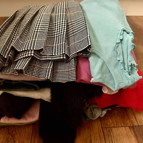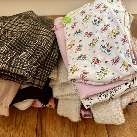 3 jeans: en blå med hull på kneet (skal være der altså), en blå med diamanter foran, en grønn cargojeans.