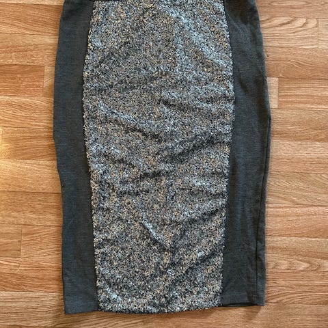 Tulip & Tatamo skjørt i størrelse S, farge grå med paljettdetaljer (100% ull). Skjørtet har glidelås bak og fôret med rosa stoff på innsiden. Like fin til hverdag som til fest