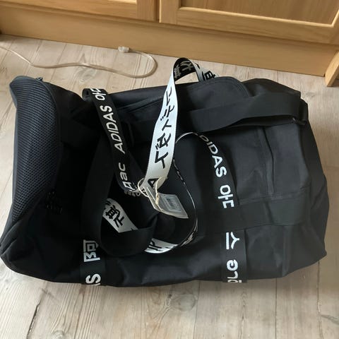 Adidas stoff bag i svart farge, designet for unisex bruk. Vesken har flere rom og bærestropper, egnet for daglig bruk eller trening.