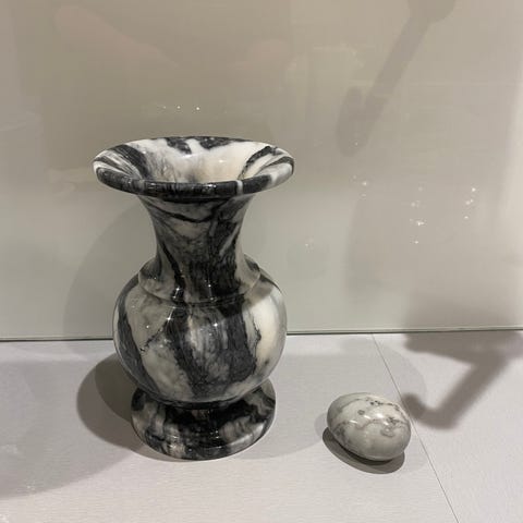 Inneholder : marmor vase , stor marmor bolle , marmor pyntehus , marmor telysestaker