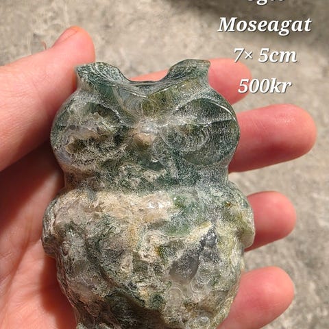 Inneholder : fluoritt uglepar , kalsitt ugle , onyx ugle , såpstein ugle og ametyst ugle . Priser står individuell men samlet er tilbud .