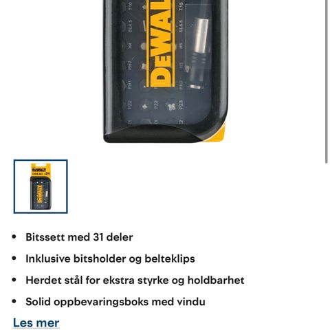 🔩 DEWALT bitssett – nesten komplett, med mange ulike bits og bitsholder.