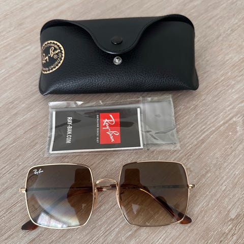 Ray-Ban unisex solbriller med farget glass og gullfarget metallramme. Leveres med et brunt etui for beskyttelse og oppbevaring. 100% uv beskuttelse