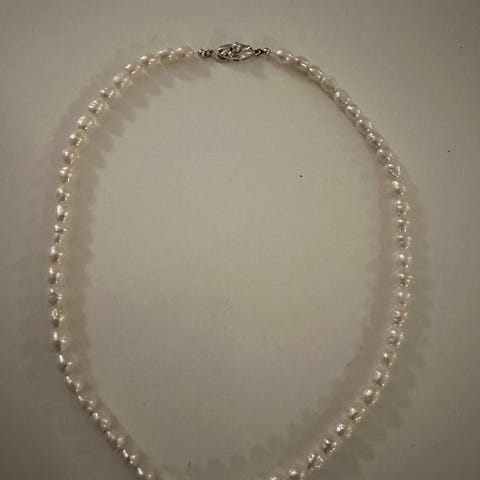 Vintage perlekjede med lås i sølv 925 selges.