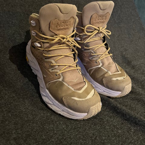 Hoka One Anapaca low goretex sko for dame i størrelse 37. Skoene er lilla med solid såle designet for godt grep på tur underlag. Kun brukt en gang. Var for små.
