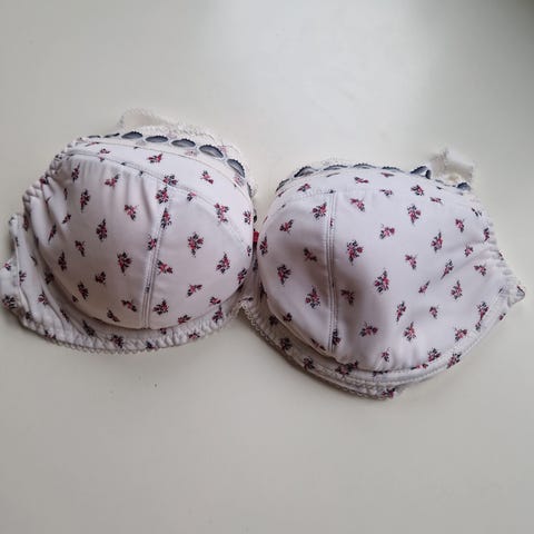 Undertøysbody fra Ellos merket str. 80 C. Dobble stropper foran. Lett vatterte cuper med bøyle. Glatt stretchstoff med blonde. Åpning over rygg. Har bare ligget i skapet og aldri blitt brukt.