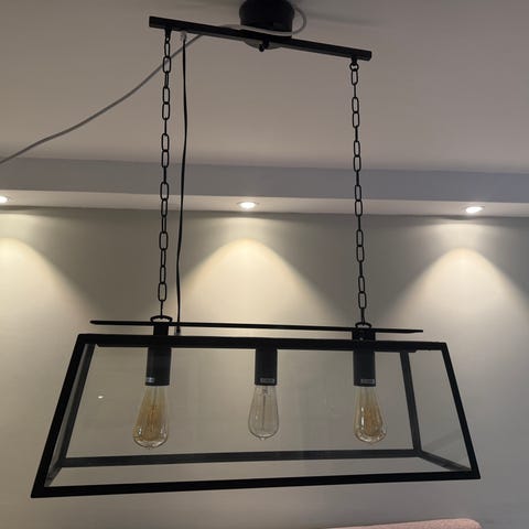 Stilig og moderne spotlampe med fire justerbare lamper. Passer godt til stue, kjøkken eller gang. Lampen bruker 4 stk GU10-pærer.