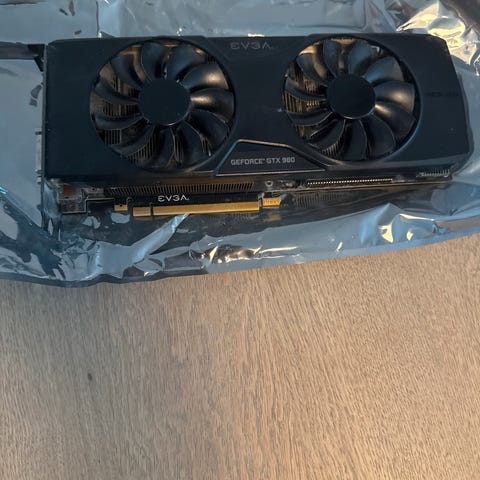 EVGA GeForce GTX 980 skjermkort med dual fan kjølesystem, helt nytt, testet den, funker veldig bra, har noen beskyttelse på der den skal kobles, kan se det på bilder