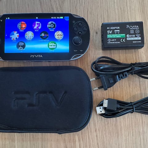 Playstation Vita PCH - 1000 Sapphire. I tilnærmet ubrukt tilstand. Den har ingen bruksmerker og fremstår som ny. Fargen er knallblå og glitrer skikkelig. Fin til display. Kommer med forseglet 8GB memory card og 4 forseglet spill