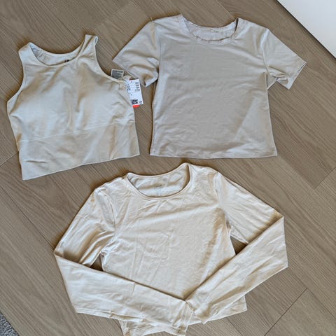 Aim'n Macchiato Ribbed Seamless Crop Long Sleeve Topp i størrelse S. Topp i ribbestrikket materiale med langermet design, egnet for kvinner. Produktet har en tettsittende, sømløs passform og er i fargen macchiato.