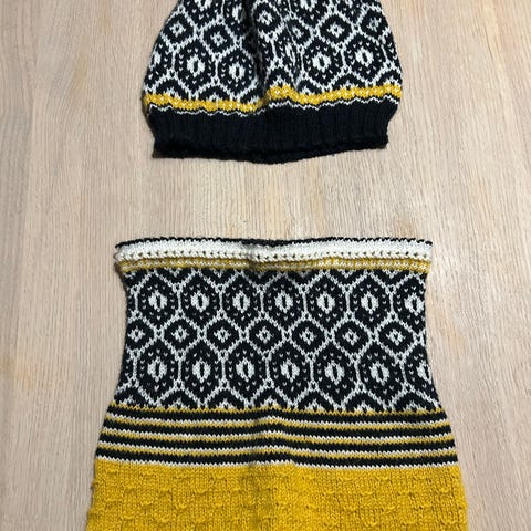 Leter du etter et varmt og vakkert håndlaget strikkesett? Jeg tar imot bestillinger på hjemmestrikkede sett med hals og pannebånd, prydet med det tradisjonsrike setesdalsmønsteret.