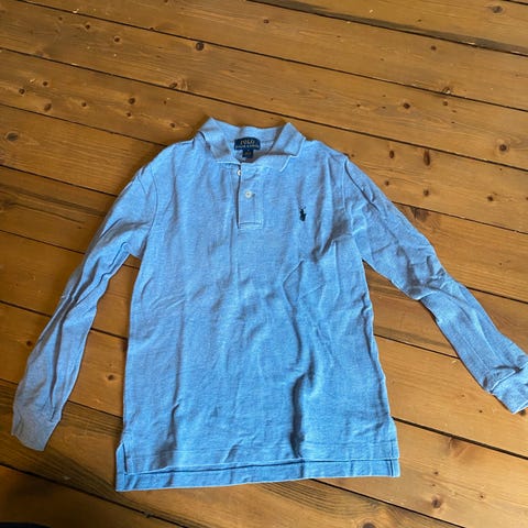 Nydelig longsleeve pique i nydelig lys blå farge. Oppdager da jeg tok bilde med blitz en liten flekk på arm og i nede i front. Ikke sett dette når genseren er i bruk. Mulig det går bort med sitronsåpe e.l. ikke prøvd selv. Koster 1000kr ny. Selges billig for 200kr