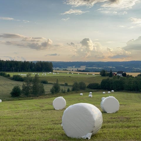Har 34 rundball med resådd eldre eng høy ensilage 71% tørrstoff ca 500kg pr ball. 2kr/kg + mva