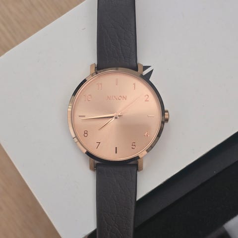 Selger en pen Nixon dameklokke i klassisk gulltonet design.