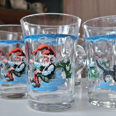 Selger Juleglass / jule glass / snaps glass med hank. Retro Julenisseglass . Jule gløgg glass med hank