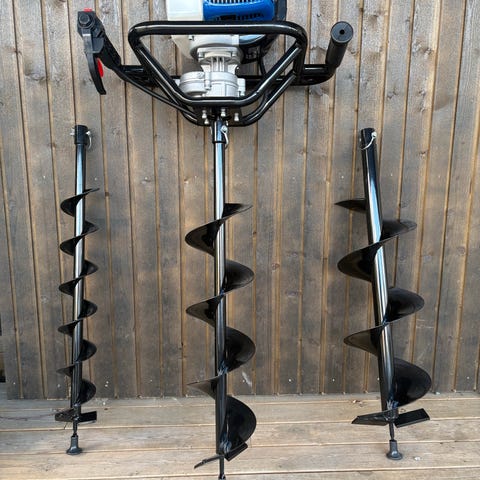 Alt du trenger for å bore hull i jord/leire til frostfritt (Oslo/Viken 1,5 meter dypt) eller mer. Vi anbefaler å ta med inntil 2 forlengere, samt spiss hullspade for å hjelpe til dersom det er mye stein/røtter. Uunnværlig om du ikke kjenner grunnforholdene.