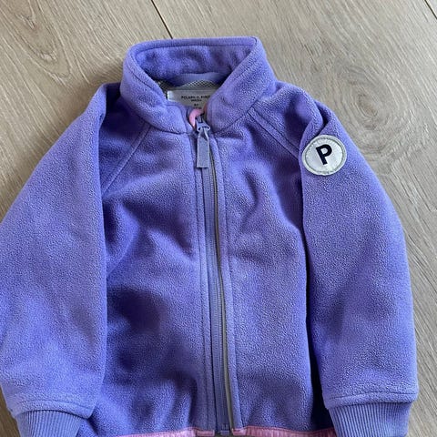 Vindfleecejakke fra Polarn o Pyret i str 80. Romslig i størrelsen, vi brukte den fra 80 til 86 og nærmere 92. I god stand😊