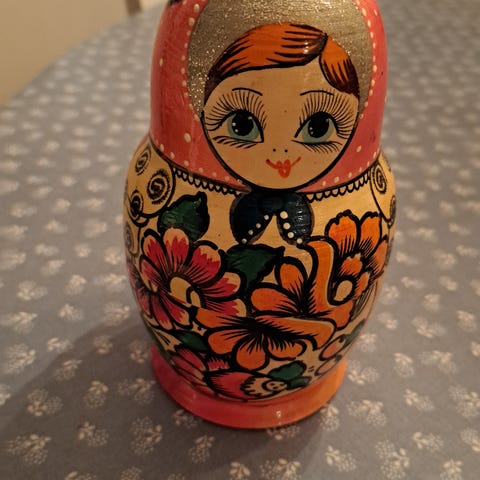 Selger et fargerikt sett med to håndmalte telysholdere fra Sapfir, Ukraina. Begge er laget i lakkert tre, med flott håndmalt blomsterdekor på svart bunn – ekte ukrainsk folk art.