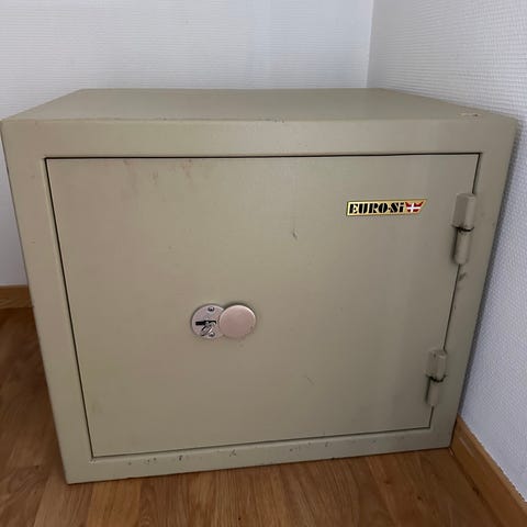 En tung og robust safe som passer godt til oppbevaring av verdisaker, dokumenter, kontanter eller smykker.