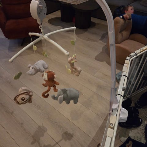 Babygym, som er enkel å ta opp og enkel å ta ned igjen. Alt som baby trenger i en babygym. Den er blitt pent brukt.