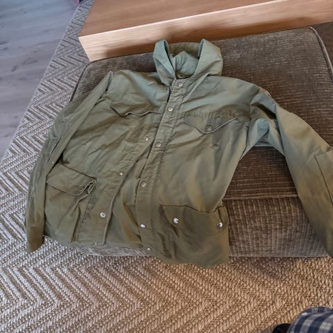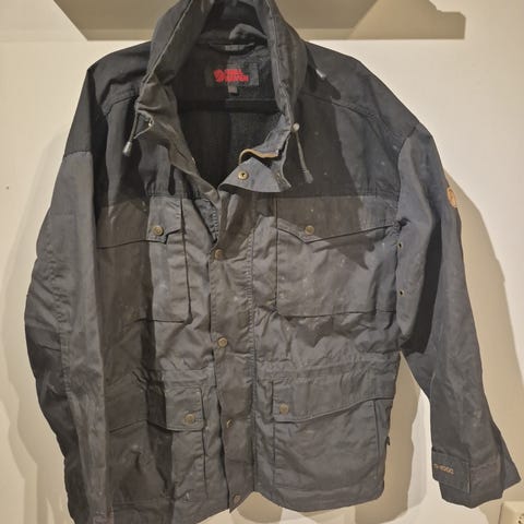 Fjällräven jakke i svart med hette. Str XS, stor i str (jeg bruker normalt S/M i jakke) plass til tykk genser under!