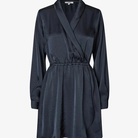 Sanna Dress fra Maud er en omslagskjole med knyting i livet og skulderputer. Kjolen er enkel å style opp med hæler og ned med sneakers.