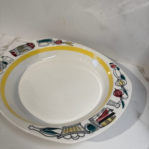 To tallerkener D: 25 cm fra Figgjoflint. Begge i fin stand uten skår/krakeleringer. Den ene tallerkenen har mulighet til veggoppheng. Den andre har ørlite slitasje på gullkantet. Begge med friske farger i motivet og blank glasur. Kr. 400,- pr. stk.