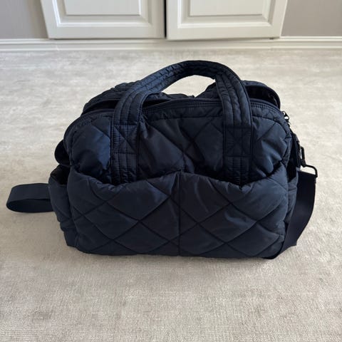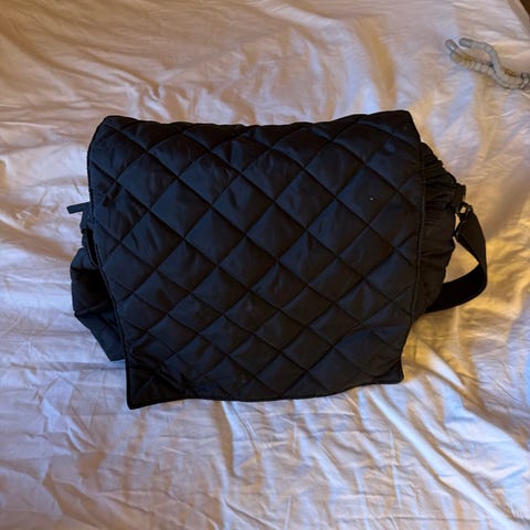 Pent brukt meget lekker stelleveske med mange praktiske lommer og lokket som kan brettes ut som stelleunderlag.