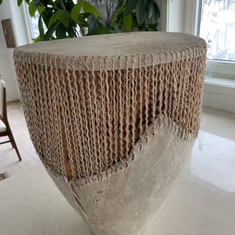 Djembe med bag kjøpt fra Thomann i 2011. Den er lite brukt og har stått urørt de siste årene.