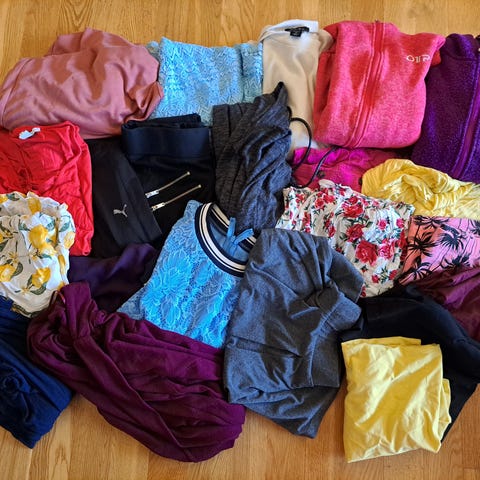 Div dameklær. Treningstøy, singlett, jeans, genser, cardigan, tynn bukse i str M og L. Kan sendes mot porto.