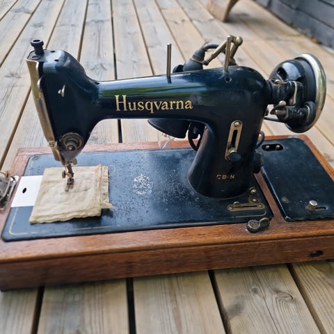 Husqvarna Zig-Zag symaskin med manuell styring. Maskinen leveres med tilbehør inkludert strømledning og fotpedal. Passer til grunnleggende sømoppgaver. Maskinen starter men noe av mekanikken henger fast. Trenger ettersyn/smøring/rep. Har stått ubrukt noen år. KI tidfester den slik: 'Ser ut til å være fra en periode mellom slutten av 1950-tallet og tidlig 1970-tall'.