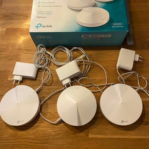 Selger ett sett med TP-link Deco M5, med 3 decoer. Settes enkelt opp via Tp-link appen.