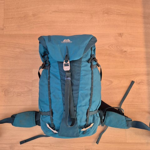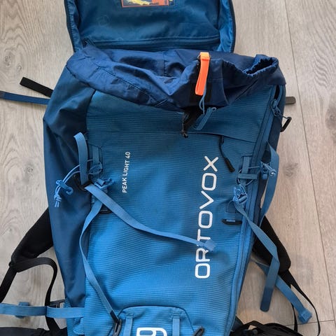 Pent brukt klatresekk fra Blue Ice. Str S/M. Følger med hjelmnett. Fin gråsvart farge. Selges da den ikke passet mitt bruk.