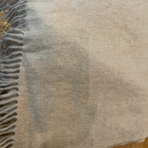 Fin fargekombinasjon. Usikker på materialet, men tror det er en del ull i det.
