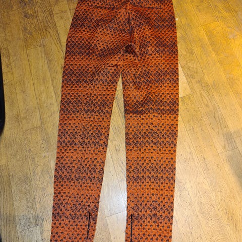 (Passer forsåvidt ok, men trang og for lav i livet for nåtidsmeg = preferanser). Målebåndet: Tversover linning ca 40/41cm. Rise ca 23cm. Innerbenslengde ca 74cm.